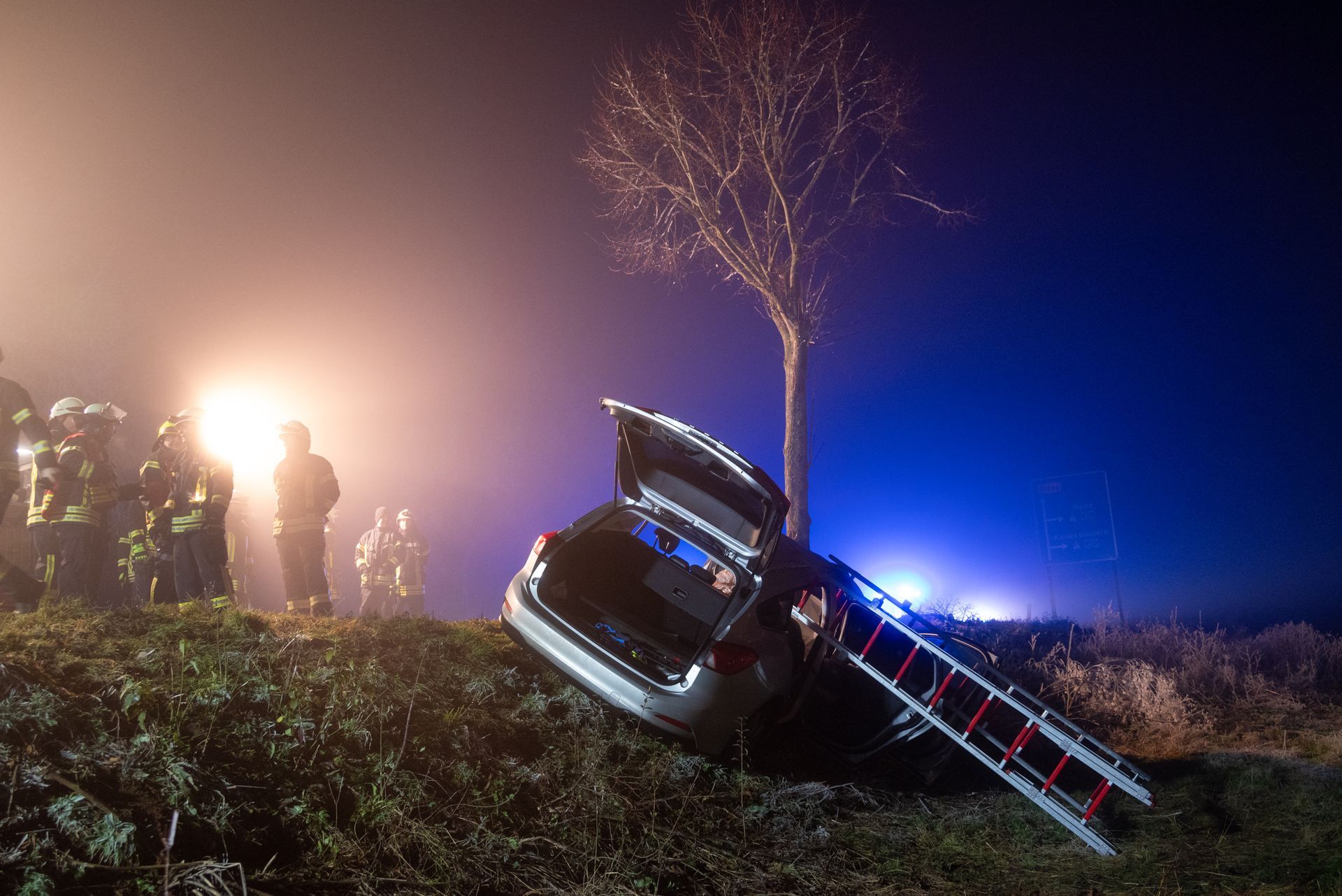L401/Freimersheim: Schwerer Unfall im Nebel – Fahrzeugführerin im Wrack eingeklemmt